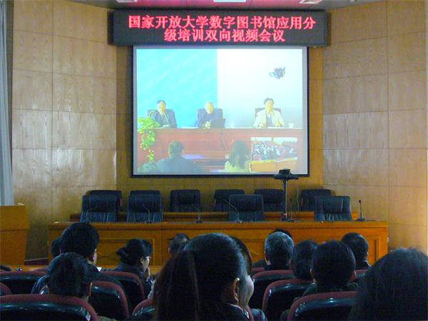 根據(jù)國家開放大學(xué)統(tǒng)一安排,11月29日上午,國家開放大學(xué)召開數(shù)字圖書館應(yīng)用分級培訓(xùn)雙向視頻會議。校黨委委員、副校長李國敏出席了視頻會議,學(xué)校圖書館館長張承良,副館長王莉華、章冬生,圖書館全體工作人員以及學(xué)校其他相關(guān)部門人員通過雙向視頻系統(tǒng)參加了培訓(xùn)會。